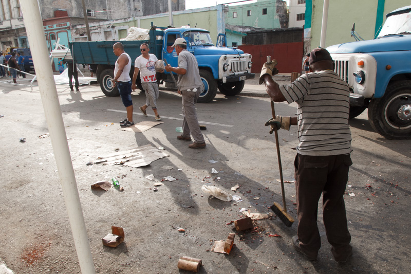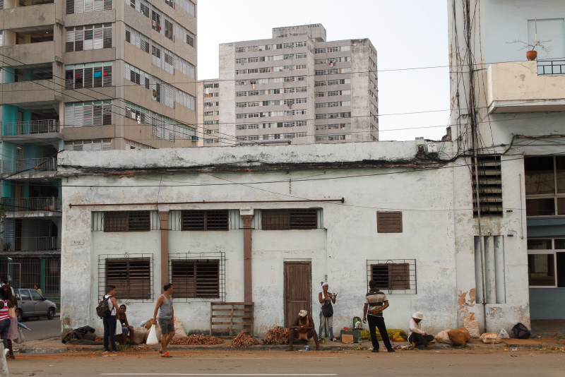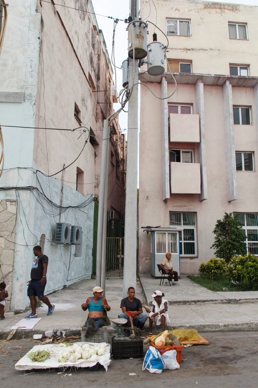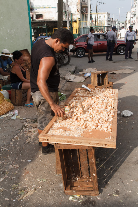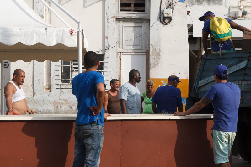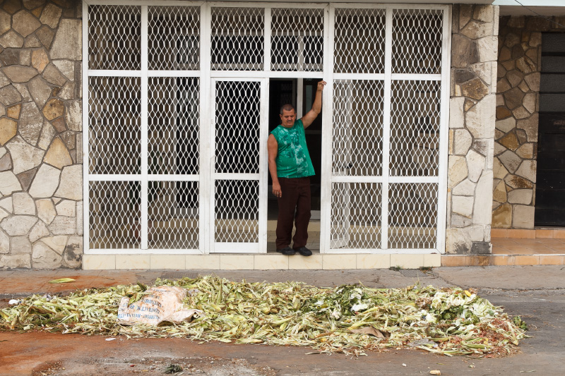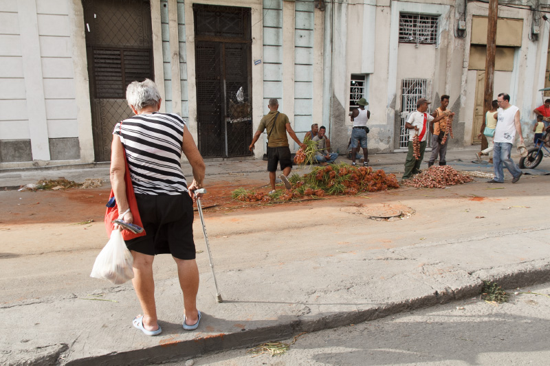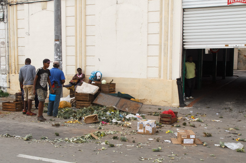 Así es esta feria cubana, como el pan y el circo, como un surco de campo en medio de la ciudad. Se me ocurrió este sábado ya en la tarde tomar algunas instantáneas de este pedazo improvisado cuando casi todos vendían las últimas mercancías y recogían lo poco que quedaba para terminar dejando estelas de maíz y piña, troncos de plátanos, pedazos de yuca, malanga y una tierra colorada con cajitas de comida vacías en las puertas de los vecinos asombrados de tanto reguero.