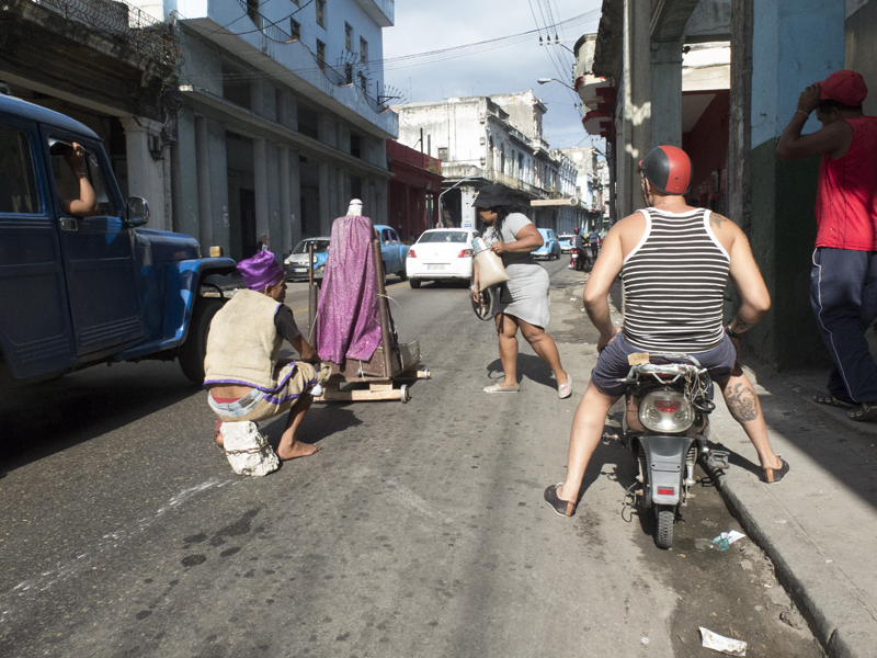 Luis, lleva años pidiendo limosnas en las calles a nombre del santo, tal pareciera que para el esto es un oficio, se arrastra por avenidas y calzadas con una piedra atada al pie y un pequeño carro con la imagen de San Lázaro en donde el transeúnte de a pie y hasta de los carros le echan dinero, parece haber perdido la razón.