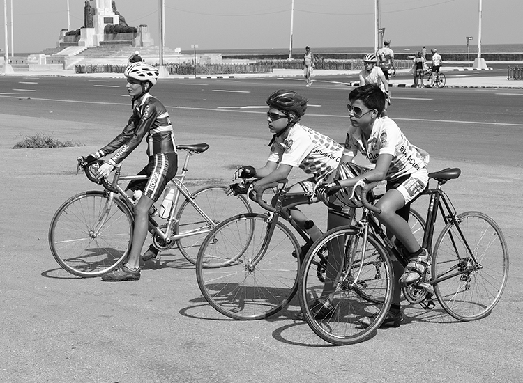 Creo que al igual que la música, las cualidades existenciales del ciclismo conducen a un sentido de comunidad engendrado inconscientemente. Fue ese sentido comunitario el que sentí, aquella mañana todavía nebulosa pero brillante, mientras fotografiaba a los que conducían elegantemente durante todo su trayecto en los alrededores del Malecón.
