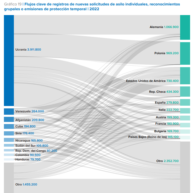 Sobre las tendencias de asilo, el informe revela que la cantidad de nuevas solicitudes de asilo individuales aumentó un 83 % en comparación con 2021.