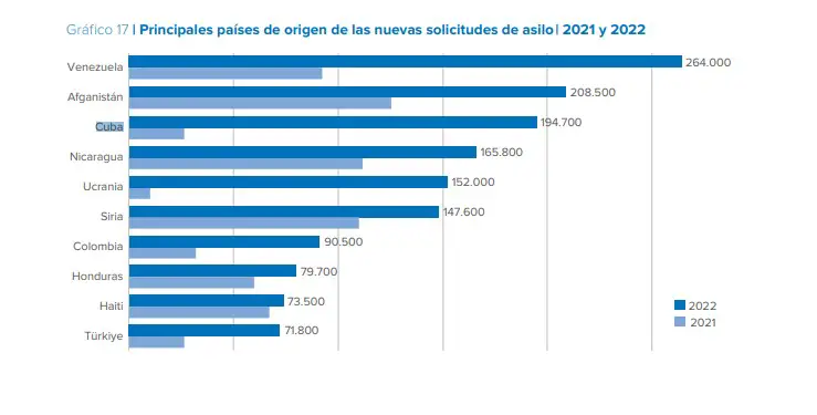 Solo dos naciones están por delante de Cuba, que son Venezuela con 264 mil solicitudes y Afganistán con 208 mil 500 solicitudes.