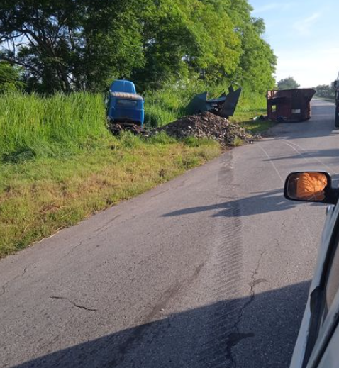 En las imágenes, se observa como el pesado vehículo se ubica a un lado de la carretera, evidenciando los daños tras el acontecimiento.