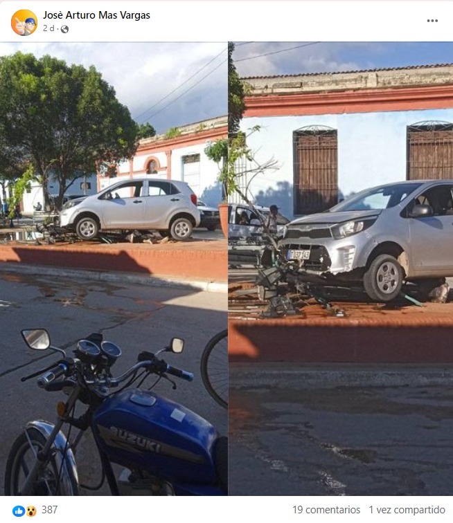 Un auto de turismo experimentó un accidente en pleno día al colisionar con bancos y farolas en una plaza céntrica de Trinidad, en la provincia de Sancti Spíritus.