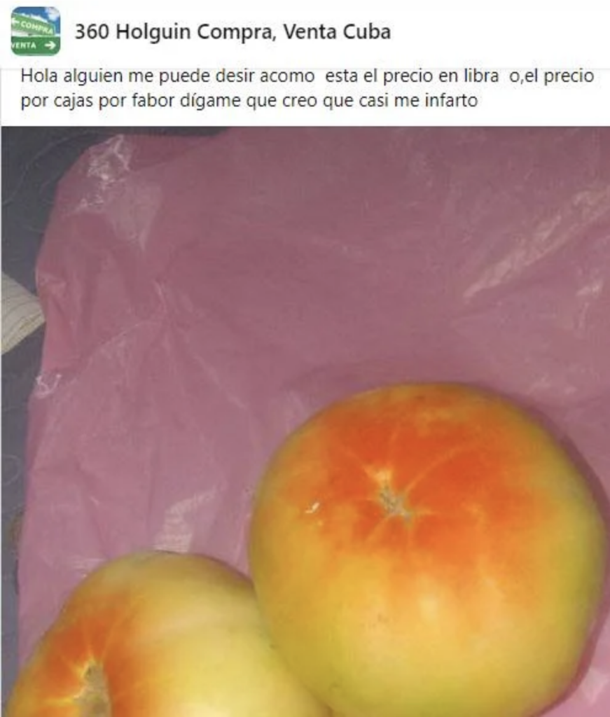 En ese sentido, un cubano preguntó en el grupo de Facebook “360 Holguín Compra, Venta Cuba”, que en cuánto estaba el precio de la libra de tomates, a lo que muchos internautas respondieron.