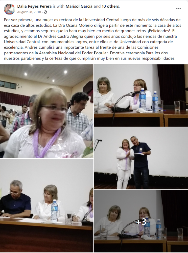 Así sería su despedida de Cuba, cuando le dio paso en la Rectoría de la UCLV a otra represora: Osana Molerio.