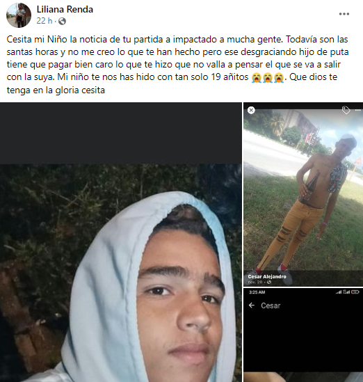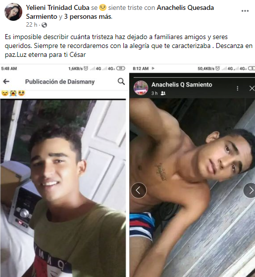 Por su parte, la internauta identificada como Yelieni Trinidad Cuba expresó: “Es imposible describir cuánta tristeza has dejado a familiares, amigos y seres queridos. Siempre te recordaremos con la alegría que te caracterizaba. Descansa en paz. Luz eterna para ti, César”.