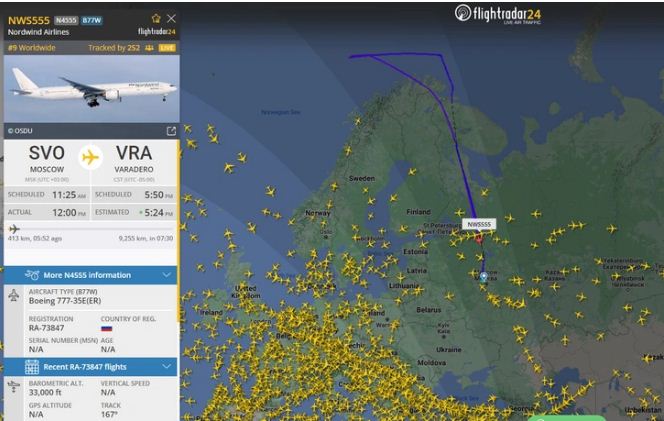 El vuelo de la aerolínea rusa Nordwind a Varadero de este lunes se vio en la obligación de retornar sobre aguas internacionales y a usar el espacio aéreo de Noruega, vetado a los aviones de Moscú debido a las sanciones por la invasión de Ucrania.