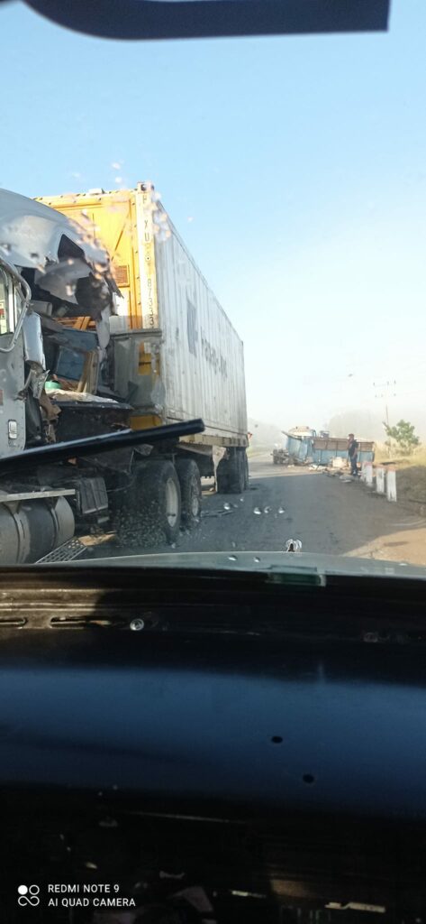 Las fotos que compartió el testigo mostraron el estado de los camiones después del choque. Uno de ellos, de la marca estadounidense International Truck and Engine Corporation, quedó con la cabina destrozada, aunque el contenedor que llevaba no se vio afectado.