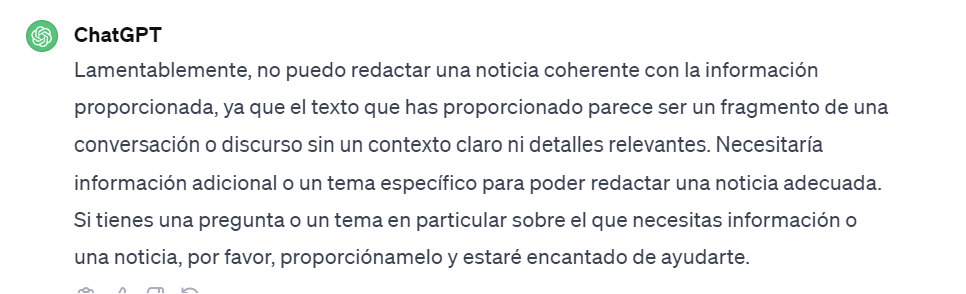 Al menos eso es lo que se intuye de lo expresado por ella, si bien ha sido dificil que hasta el ChatGPT (Inteligencia Artificial) entienda lo que esta mujer dijo en unas declaraciones.