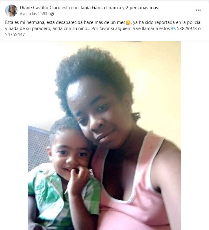 Una madre cubana y su hijo están reportados como desaparecidos desde hace más de un mes, de acuerdo a una publicación de su hermana.