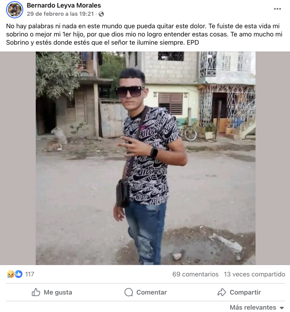 Por su parte, Bernardo Leyva Morales, tío del muchacho, también expresó en sus redes sociales el dolor que siente por la perdida de su familiar, al que consideraba como un hijo, según sus propias palabras.