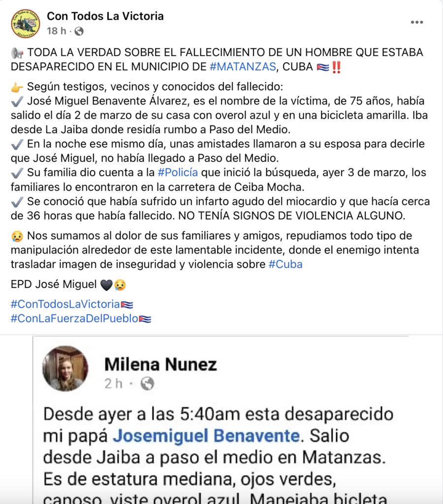No obstante, por tratarse de un perfil de la Seguridad del Estado, no se puede corroborar si el anciano cubano presentaba signos de violencia. Esto tomando en cuenta los últimos casos de desapariciones que han ocurrido en la isla comunista que han terminado en un desenlace fatal.