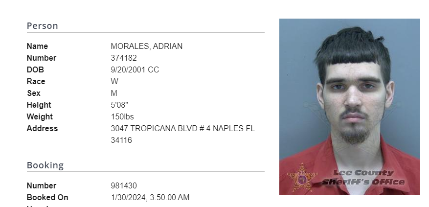 Según la ficha policial, ofrecida por la Oficina del Sheriff del condado de Lee, se trata de un hombre y una mujer, identificados como Adrián Morales y Rosmery Arteaga Puñales, respectivamente.
