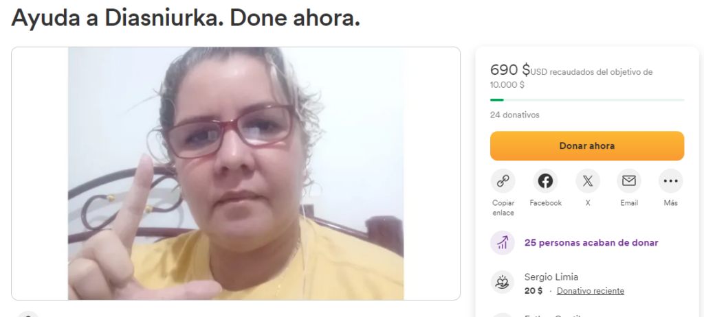 “Aunque ella nunca ha pedido ayuda para sí misma, porque todo lo que ha hecho siempre ha sido ayudar a otras personas, sobre todo a madres y niños, en estos momentos ella necesita toda la solidaridad que podamos movilizar, y por esos sus amigos más cercanos hemos organizado esta campaña”, escribió Lázara Aylin Díaz en la publicación.