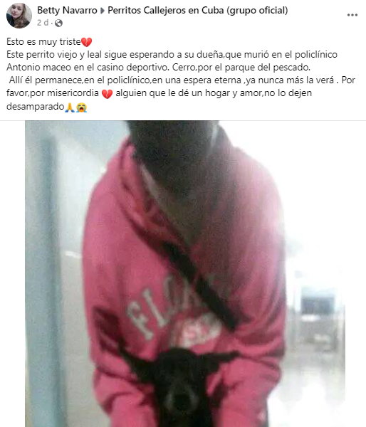 Según la usuaria Betty Navarro, el canino sigue aguardando en el Policlínico Antonio Maceo, en el Casino Deportivo, en Cerro, sin entender que nunca más verá a su amada dueña.