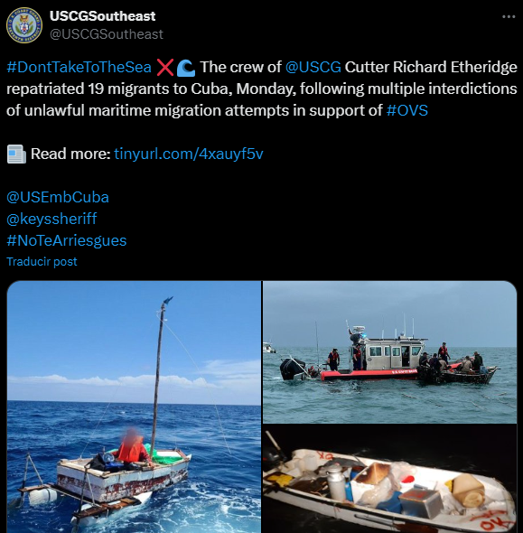 Según el reporte de la agencia federal, la operación fue un esfuerzo conjunto dentro de la Operación Vigilant Sentry, destinada a interceptar intentos de migración marítima ilegal.