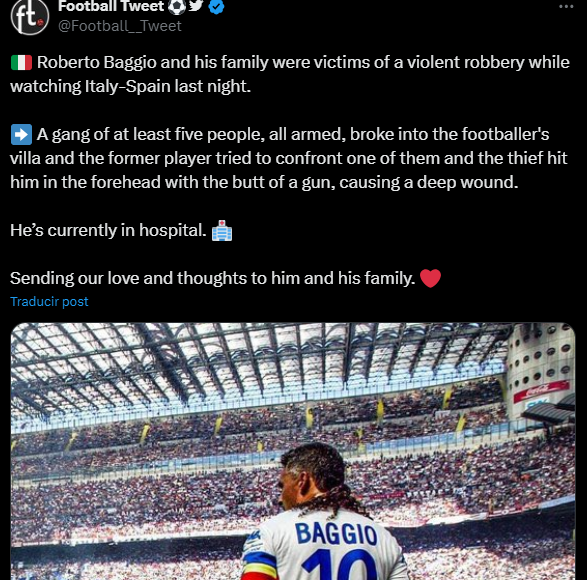Según reportes del “Corriere dello Veneto”, aproximadamente cinco asaltantes irrumpieron en el hogar de Baggio armados y sometieron tanto al exfutbolista como a su familia.
