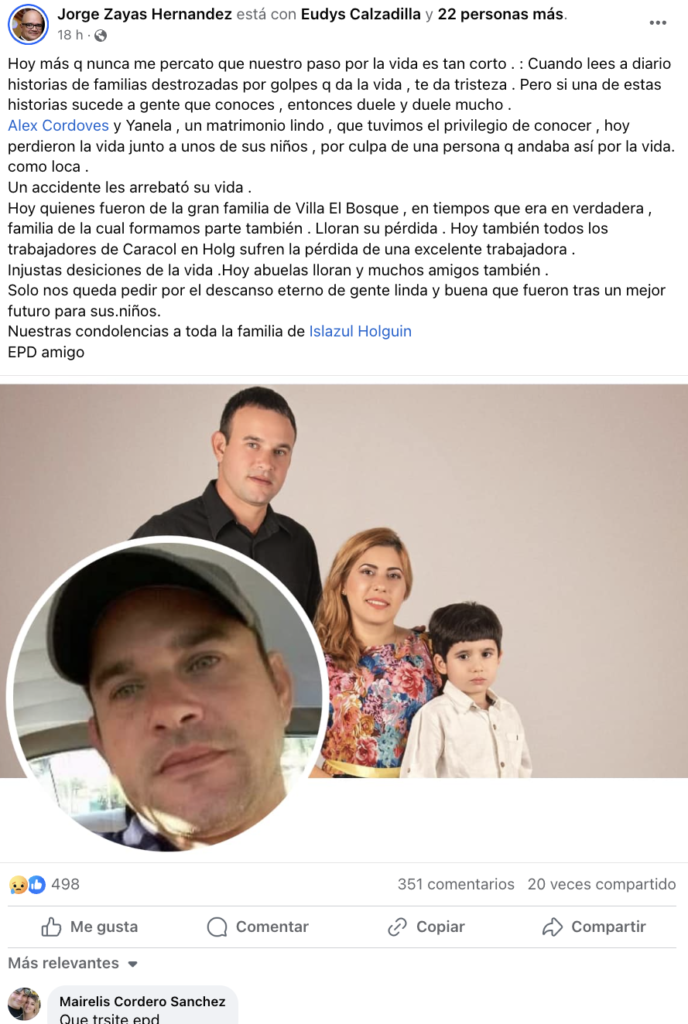 Presuntamente, esta familia cubana era oriunda de Holguín, y la pareja al parecer había trabajado en el grupo hotelero Islazul en Holguín.