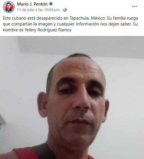 “Queridos amigos, gracias a todos por sus buenos deseos. Ayer apareció el hombre. Estaba en un hospital en Tapachula. Otros cubanos fueron y lo encontraron allí”, expresó Pentón.