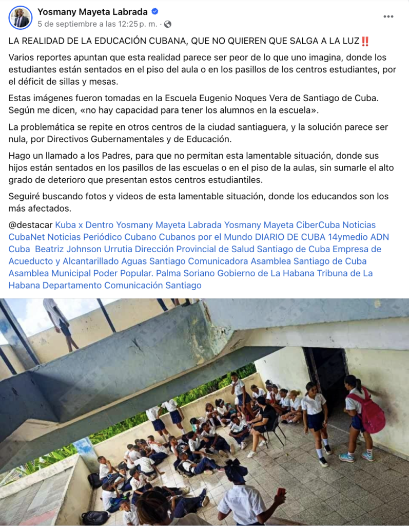 Esta situación fue difundida por el periodista independiente cubano Yosmany Mayeta Labrada, en su cuenta de Facebook, quien compartió algunas imágenes de la cruda realidad que tienen que padecer los estudiantes.