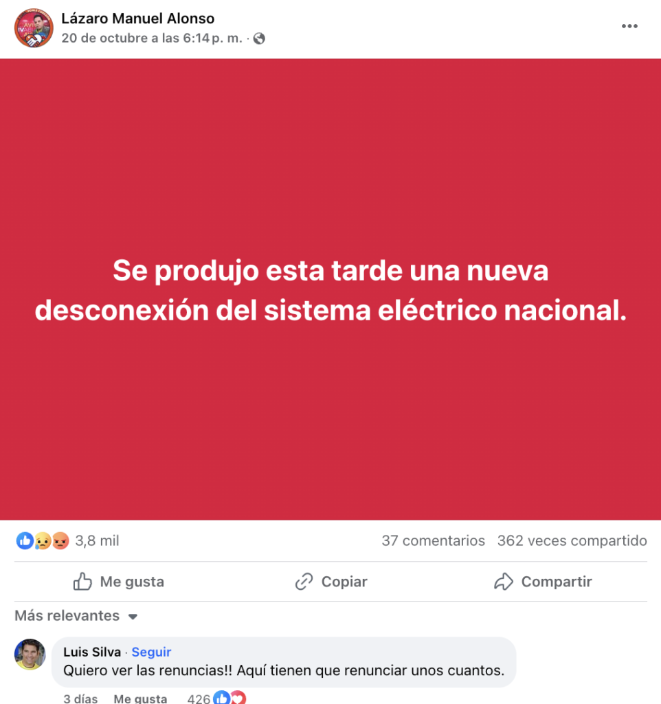 En ese sentido, Luis Silva respondió a una publicación en Facebook del periodista castrista Lázaro Manuel Alonso, quien estaba “informando” sobre la situación energética del país.
