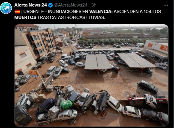 Las imágenes de lo que acontece en Valencia le han dado la vuelta al mundo entero, que a su vez se une en oración para que esta pesadilla se acabe lo antes posible.