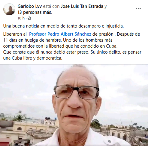 El activista Garlobo Lvv fue quien compartió la noticia en su cuenta de Facebook, expresando su alivio: “Una buena noticia en medio de tanto desamparo e injusticia. Liberaron al profesor Pedro Albert Sánchez de prisión”.