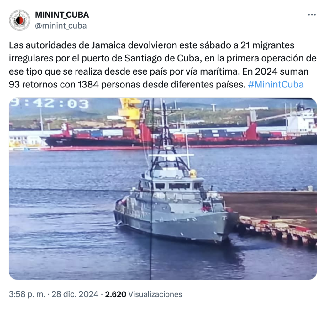 Según informó la dictadura castrista a través del Ministerio del Interior (MININT), los migrantes irregulares fueron regresados a través del puerto de Santiago de Cuba.