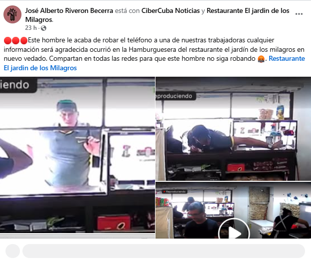 En ese sentido, José Alberto Riverón Becerra, testigo del robo y responsable de la denuncia pública, recurrió a las redes sociales para alertar a la comunidad y pedir ayuda para identificar al autor del crimen.