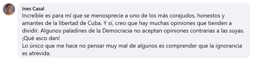 La crítica principal hacia estos “policías de la moral” radica en su tendencia a asumir una posición de superioridad, dictando cómo debe comportarse el resto de la oposición y deslegitimando a quienes luchan dentro de la isla. Esta actitud no solo fragmenta a los opositores, sino que también alimenta la narrativa del régimen, que se beneficia enormemente de las divisiones internas en el exilio, pues en ocasiones sus declaraciones no se alinean con una supuesta racionalidad política y pluralidad de criterios que ellos defienden.