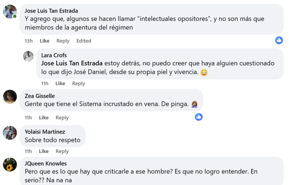 Este tipo de críticas vistas en los comentarios, estuvieron cargadas de desinformación en un primer momento, hasta que la internauta Yeye Hernández Molina apareció y pegó el texto completo de las declaraciones de Ferrer. A esta contextualización de lo dicho por José Daniel Ferrer reacción Guzmán Karell editando su post.