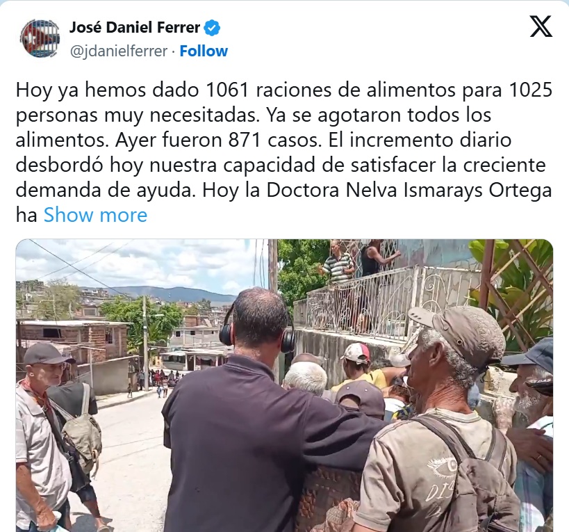 “Ayer atendimos a 871 personas, y hoy el incremento superó nuestra capacidad para cubrir la creciente demanda de ayuda”, explicó Ferrer, quien ha redoblado su labor humanitaria desde su salida de prisión. La alta afluencia provocó que los alimentos se agotaran antes de lo previsto.