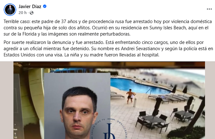 Un hombre de 37 años, identificado como Andrei Sevastianov, enfrenta múltiples cargos por abuso infantil tras agredir brutalmente a su hija de dos años en un condominio de Sunny Isles Beach, Florida.