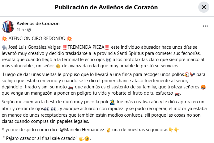 Aunque la página oficialista Avileños de Corazón presentó el arresto del culpable y la recuperación del vehículo como una victoria policial, la reacción ciudadana destapó una profunda frustración colectiva, con usuarios denunciando la insuficiencia de las penas y la alarmante reincidencia delictiva.