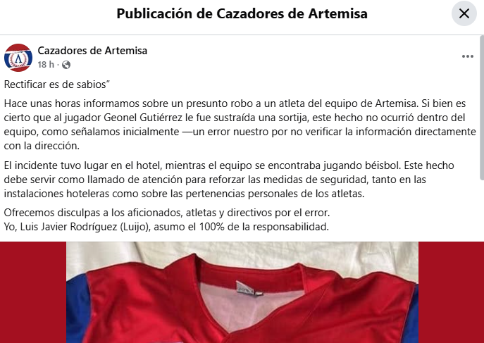 El incidente se conoció mediante una publicación del perfil de Facebook de Cazadores de Artemisa, donde se expuso la vulnerabilidad de los deportistas.