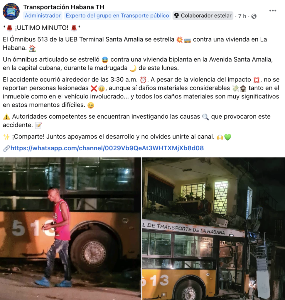 En el grupo de Facebook “Transportación Habana TH” se publicaron imágenes del choque, en las que se aprecia los daños ocasionados en la infraestructura.