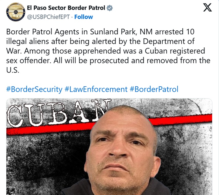 El Sector El Paso de la USBP informó a través de sus redes sociales que los agentes actuaron tras una alerta del Departamento de Defensa, y confirmó que todos los detenidos enfrentarán procesos de deportación. Las autoridades no han revelado la identidad del individuo cubano ni los detalles específicos de sus delitos.