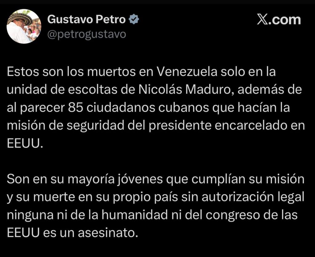 Incluso, el narcoguerrillero de Colombia, Gustavo Petro, también había mencionado en sus redes sociales que antillanos habrían muerto en la operación de Estados Unidos contra Maduro.